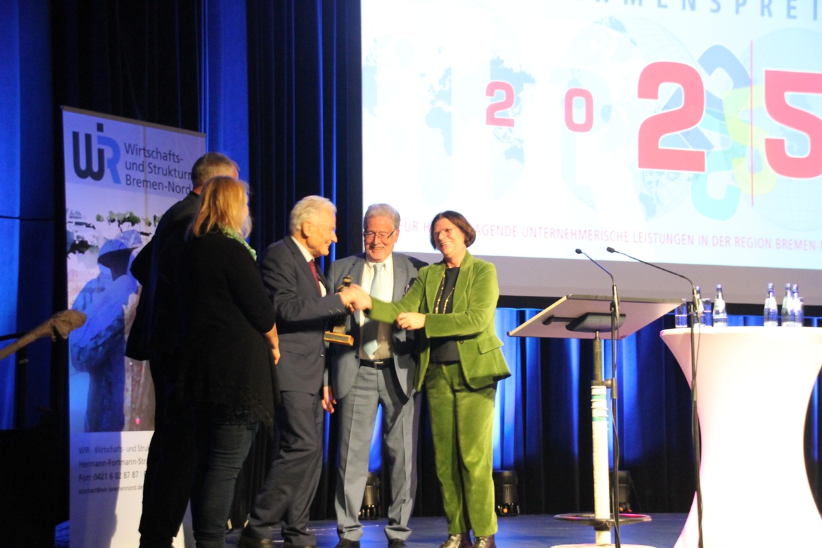 Bremen-Nord – (nik) Der Unternehmenspreis des Wirtschafts- und Strukturrats geht in diesem Jahr an eine soziale Einrichtung: das Jugendgemeinschaftswerk. Damit soll dessen Arbeit bei der Betreuung schwerstbehinderter Menschen in zwei Nordbremer Wohneinrichtungen sichtbarer gemacht werden. WiR-Vorsitzender Rainer Küchen konnte sich freuen, mehr als 100 Gäste bei der Preisverleihung im Saal des Gustav-Heinemann-Bürgerhauses zu begrüßen. Er wolle sich kurz fassen, betonte, sich nicht über die wirtschaftliche Gesamtlage auslassen zu wollen und ließ es dabei bewenden, diese „liebevoll ausgedrückt: leicht angespannt“ zu nennen. Das Motiv auf der Einladung zur Veranstaltung solle aber andeuten, „dass in der Welt die Probleme durcheinanderpurzeln.“ Der Wirtschafts- und Strukturrat wolle Handel und Handwerk, aber auch Soziales zusammenbringen. Im Hinblick auf die nahende Weihnachtszeit habe er einen Wunsch an Wirtschaftssenatorin Kristina Vogt: Was Bremen-Nord brauche, sei eine Stadtentwicklungsgesellschaft. Keine große, zwei Stellen könnten ausreichen. Schon wenn man fünf Unternehmen mit 100 Beschäftigten in Bremen-Nord ansiedeln könnte, hätte sich das steuerlich bezahlt gemacht.