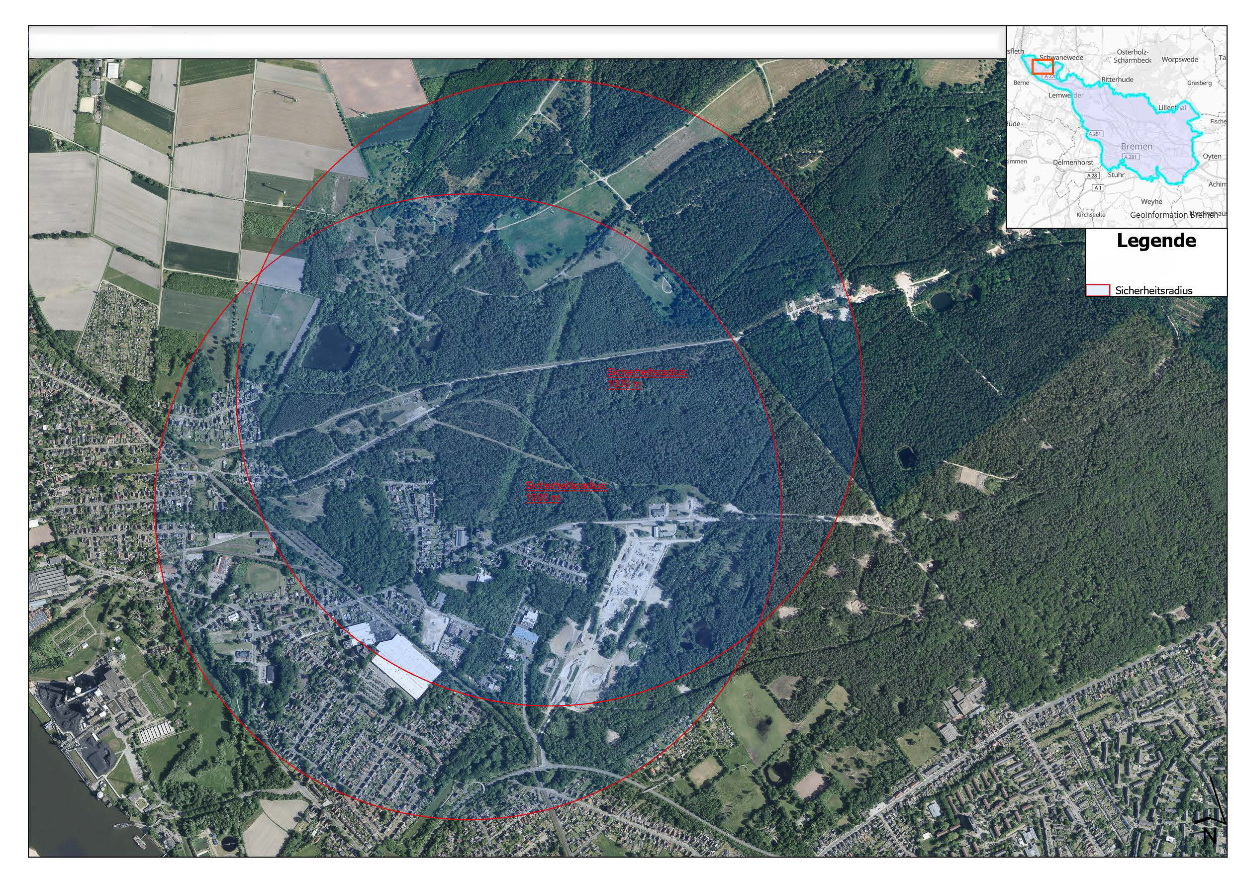 Die vermutlich englischen Fliegerbomben mit je 500 Kilogramm befinden sich in rund 450 Meter Entfernung im Waldgebiet des ehemaligen Tanklagers Farge. Die Sprengmeister vom Kampfmittelräumdienst der Polizei Bremen Thomas Richter und Hans Mohr planen die Entschärfung am Sonntagmittag gegen 13 Uhr. Voraussichtlich wird diese bis zum späten Nachmittag andauern. Sollte eine Entschärfung nicht möglich sein, werden die Bomben kontrolliert gesprengt. Eine Drohne wird für Übersichtsaufnahmen zum Einsatz kommen. Der Evakuierungsradius beträgt 1000 Meter (siehe Karte). Alle Anwohner müssen aufgrund der umfangreichen Vorarbeiten die Wohnungen zu 8 Uhr verlassen und damit auch den Evakuierungsbereich. Die Oberschule "In den Sandwehen" wird als Anlaufpunkt für evakuierte Personen dienen. Wer keine Unterkunft bei Familie oder Freunden findet, kann sich dort in der Zwischenzeit aufhalten. Es wird darum gebeten, gegebenenfalls erforderliche Medikamente sowie Verpflegung mitzunehmen. Die Fenster sollten beim Verlassen der Wohnungen auf Kipp gestellt werden. Von der Evakuierung sind rund 2000 Personen betroffen.