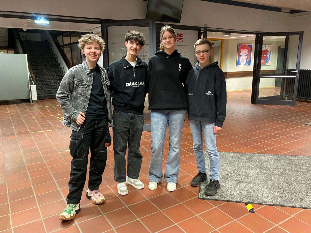 Lennard Rosendahl (15), Arian Bünnagel (16), Johanna Schmitz-Engels (15) und Mathis Happel(13) (von links) stellten sich als Vertreter des Jugendforums dem Beirat Burglesum vor. Foto: as