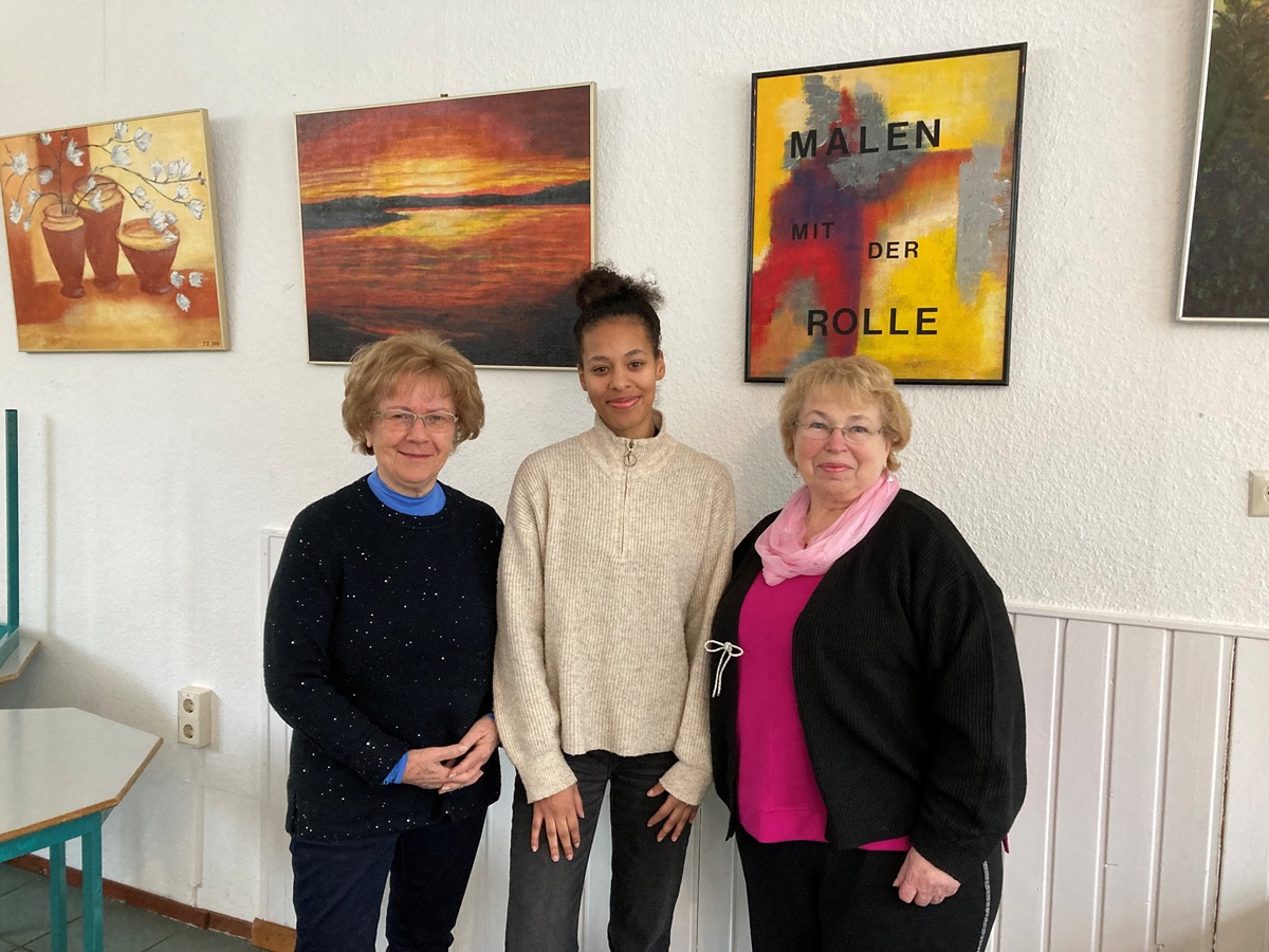 Waltraud Hahnfeld, Zami Inoussa und Ingeborg Osterhof (von links) freuen sich über neue Gäste in der Kulle. Zu den regelmäßigen Terminen wird auch ein Konzert von Vüllgraf am 6. Juni angeboten, zudem beteiligt sich das Team von der Kulle bei den Burglesumer Kulturtagen, Start 30. Mai. Foto: as
