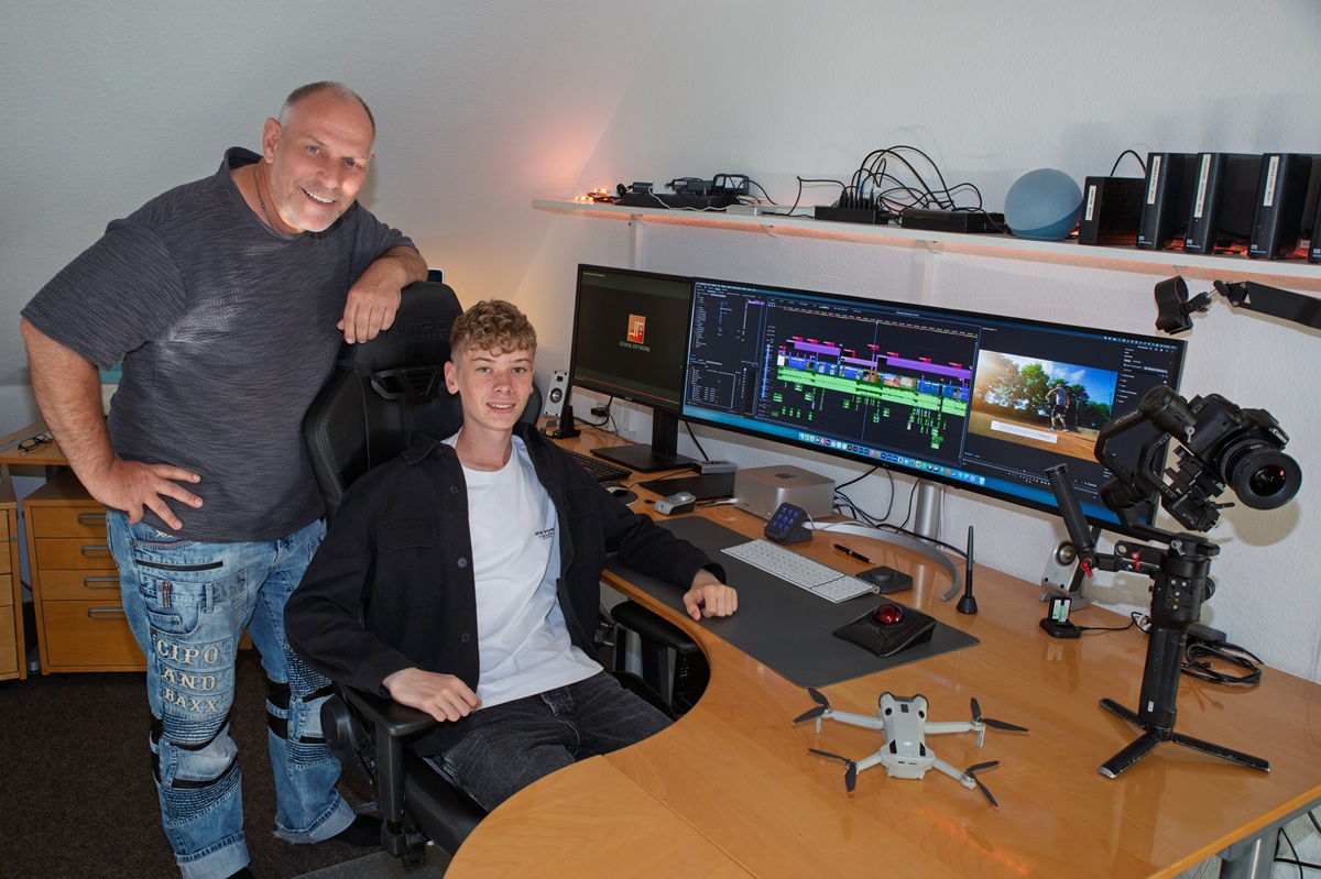 Christoph Urhahn von der Media Agentur Gemini ArtWork (links) und Schülerpraktikant Tjark Reinkelürs haben den Film erstellt. Dieser läuft jetzt unter anderem auf der Website der Gemeinde. Foto: fr